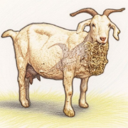 Norah (pictured left, with baby Robyn) joined our herd in December 2024, when she was about 4 years old. Until that point she had been living with a herd of sheep, and it took her a while to become comfortable around other goats. However, billy-goat Nelson fell in love with her at first sight, and quickly won her over. Norah and Nelson had two kids, Robyn and Rosa, in May 2025.
